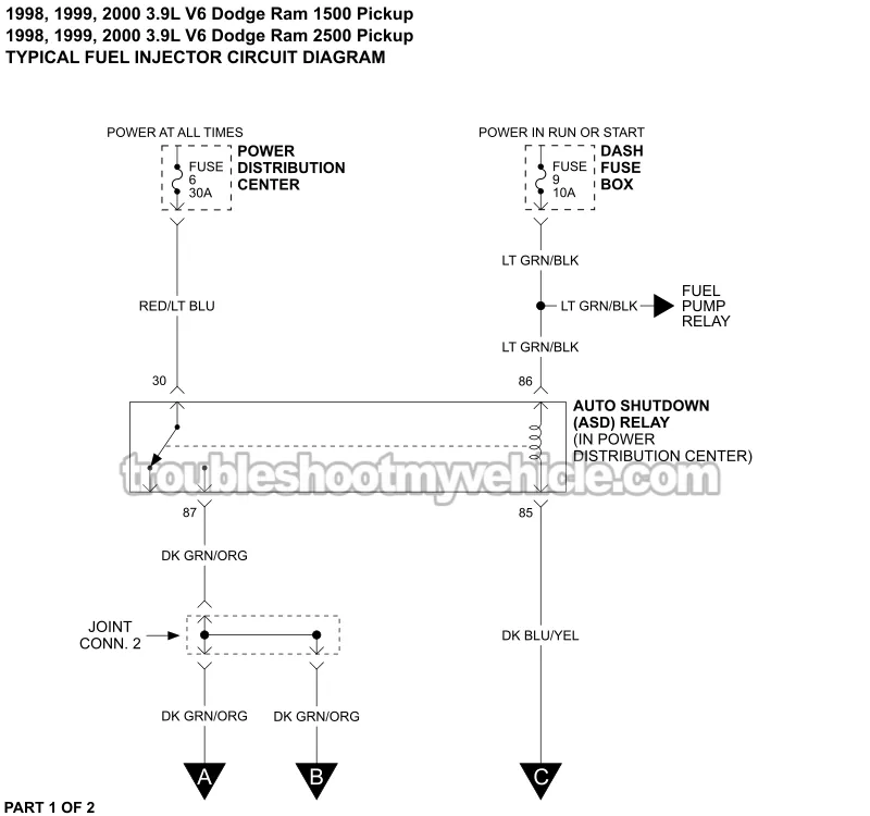 Fuel Injector Wiring Diagram (1998-2000 3.9L V6 Dodge Ram Pickup)